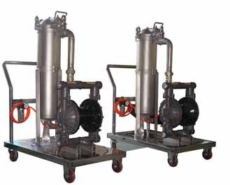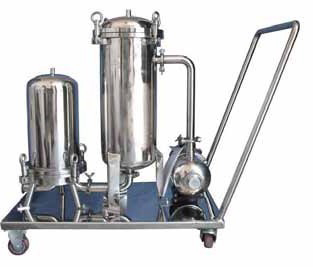 净圣移动小推车过滤机是由不锈钢过滤器,移动推车, 进料泵及相关的管道阀门组成。设备适用于物料过滤时有几个出料口进行交叉过滤的环境,设备操作方便灵活,仅需要对设备的进出口及动力源连接即可操作。该装置主要由泵机组、粗过滤器、串联过滤器、溢流阀、组合阀块、进出口胶管组件、球阀、电器元件、压力表 、推车等组成,可根据不同工况定做。